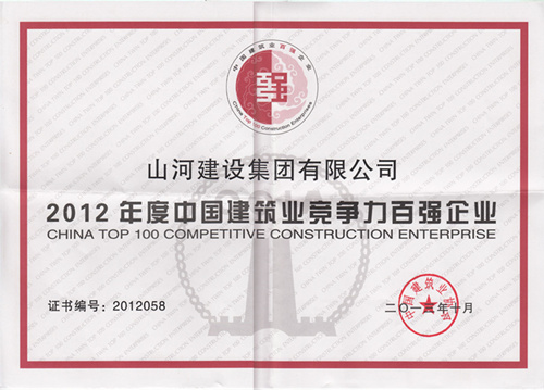 在日前召開的2012年度中國建筑業(yè)雙百強企業(yè)發(fā)布會上,山河建設(shè)集團有限公司憑借較強的市場競爭力、先進的企業(yè)管理水平、良好的社會品牌,再次獲得“中國建筑業(yè)競爭力百強企業(yè)”稱號。