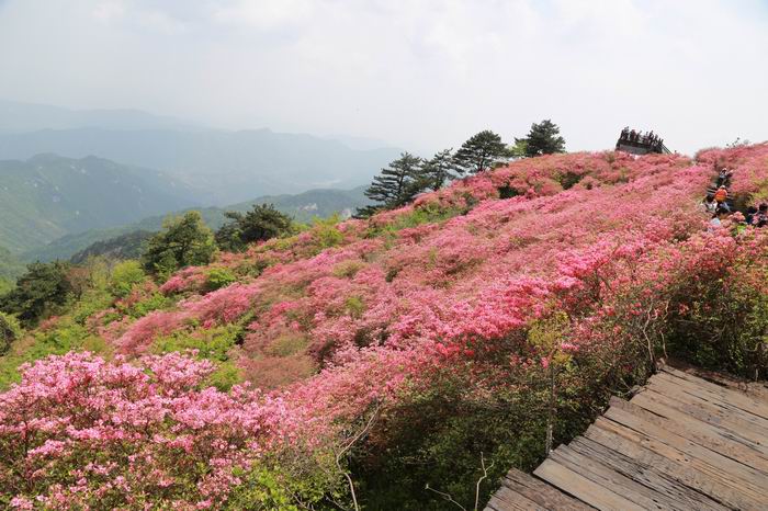 在交通不便的古代,文人墨客登山詠懷言志,今天人們依然留念于一座座山峰。如王秋楊登珠穆朗瑪峰的不多,為了許下心中心愿拜訪深山古寺而登山的信徒也有,而更多的恐怕是城市里人們的一種出離,出離鋼筋水泥中的灰蒙蒙的天空和快節(jié)奏的生活。無論我們懷有怎樣的念想投入大山的懷抱,它總能撫平我們所有的情緒,給予我們精神以慰藉。此次的龜峰山最高海拔1320米,而且又有索道的助力,登上山頂就變成一件很輕松的事了,我們也得以有更多的精力徜徉于花海,合影于山間,極目遠(yuǎn)眺于山頂。