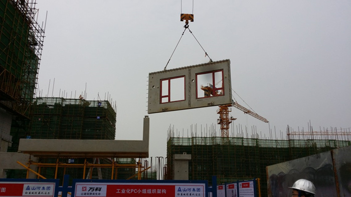 山河集團(tuán)南昌萬科項(xiàng)目首批PC構(gòu)件吊裝成功