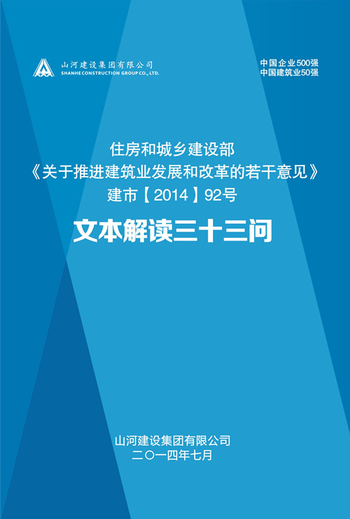《意見》一出臺就引起集團決策層的高度重視,第一時間組織管理層進行深入研究并安排編寫解讀本。7月下旬,經(jīng)營事業(yè)部與戰(zhàn)略企劃部共同編寫完成了92號文的文本解讀《三十三問》。文中對《意見》的關(guān)鍵點進行解讀,旨在幫助山河同仁了解相關(guān)政策,明確行業(yè)及企業(yè)發(fā)展方向。本冊子在編寫上采取一問一答的方式,并配以實際案例進行講解,力求通俗易懂。