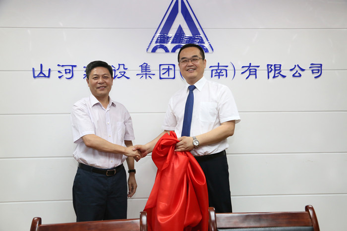 上午9:30,參觀河南公司辦公場所之后,山河集團董事長程理財和河南公司總經(jīng)理馬文敏共同為河南公司揭牌。