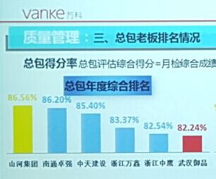 會(huì)上,南昌萬科公司依據(jù)月檢及季檢中質(zhì)量、安全、實(shí)測(cè)實(shí)量等指標(biāo),對(duì)2015年各項(xiàng)目總包進(jìn)行統(tǒng)計(jì)排名。經(jīng)過評(píng)比,山河集團(tuán)以優(yōu)異的成績(jī)?cè)谀喜f科眾多總包中排名第一,再次獲評(píng)“南昌萬科最佳總包”。