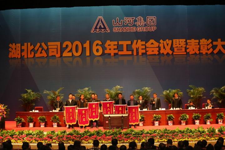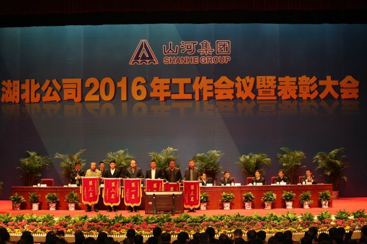 2月27日上午,山河集團(tuán)湖北公司2016年工作會議暨表彰大會在洪山禮堂一號廳隆重舉行。會議總結(jié)了2015年湖北公司各項重點工作完成情況,部署了2016年湖北公司發(fā)展規(guī)劃,并對優(yōu)秀項目經(jīng)理部及優(yōu)秀個人進(jìn)行了表彰。山河集團(tuán)董事長程理財、黨委書記舒先厚、總經(jīng)理龔衛(wèi)國、執(zhí)行總經(jīng)理姚偉、常務(wù)副總經(jīng)理林中茂、湖北公司常務(wù)副總經(jīng)理柯為正等領(lǐng)導(dǎo)出席本次會議。會議由湖北公司人事行政總監(jiān)李穎主持。