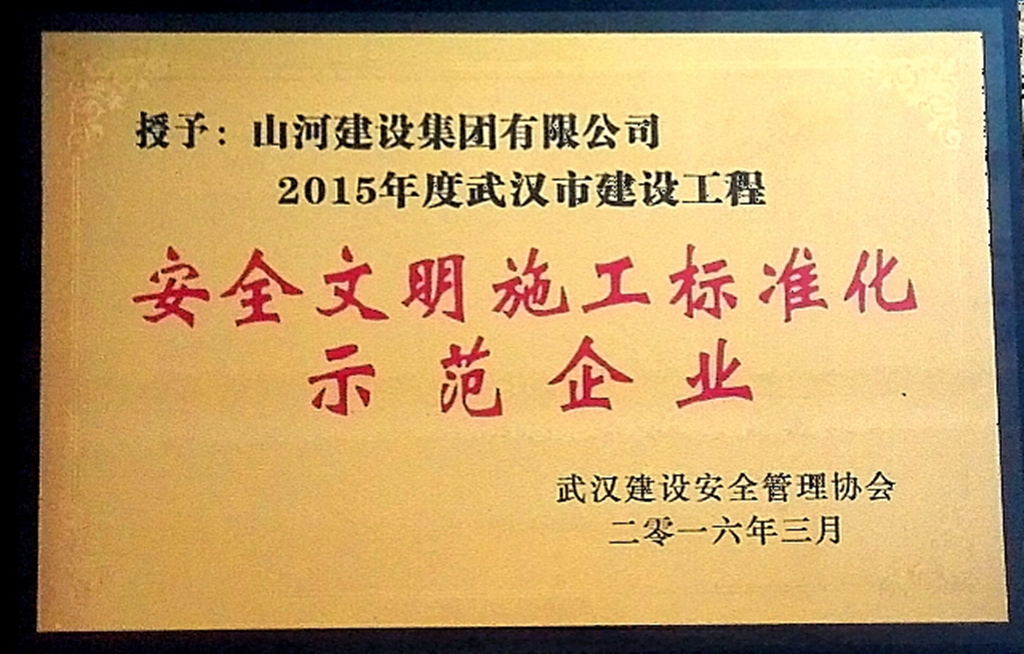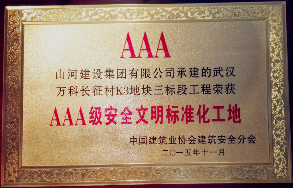 3月2日,武漢市建筑安全管理協(xié)會召開了第二屆二次理事大會暨會員大會。山河集團(tuán)榮獲“2015年度武漢市建筑施工安全標(biāo)準(zhǔn)化示范企業(yè)”稱號,承建的萬科長征村K3地塊項目榮獲全國“AAA級安全文明標(biāo)準(zhǔn)工地”稱號。