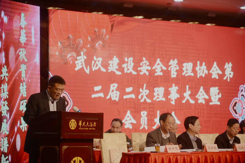 武漢市建筑安全協(xié)會副會長、山河集團(tuán)常務(wù)副總經(jīng)理林中茂主持會議。武漢市建委副主任夏平,市民政局處長張福先,市建委質(zhì)安處處長謝衛(wèi)華,市安全監(jiān)管站站長熊付剛、書記王偉震、副站長周捍東,市安全協(xié)會應(yīng)志剛等領(lǐng)導(dǎo)及在漢建筑施工單位參會代表共計400余人參加此次會議。