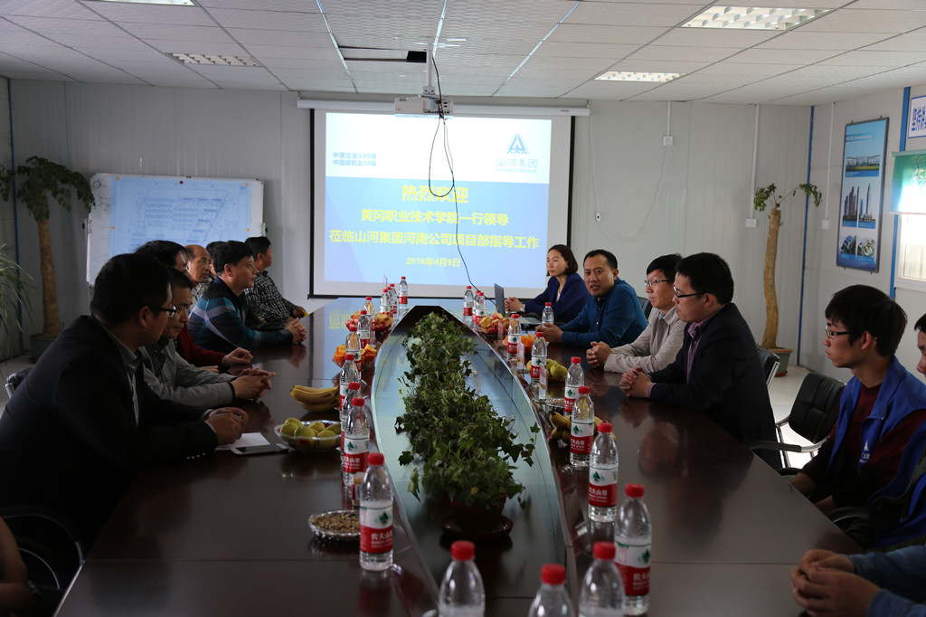 4月9日至10日,黃岡職業(yè)技術(shù)學(xué)院校黨委副書記王維華一行來到河南公司開展工地黨旗紅、共建黨支部、學(xué)生座談會活動,河南公司總經(jīng)理馬文敏、副總經(jīng)理余亮、劉軍等全程接待。