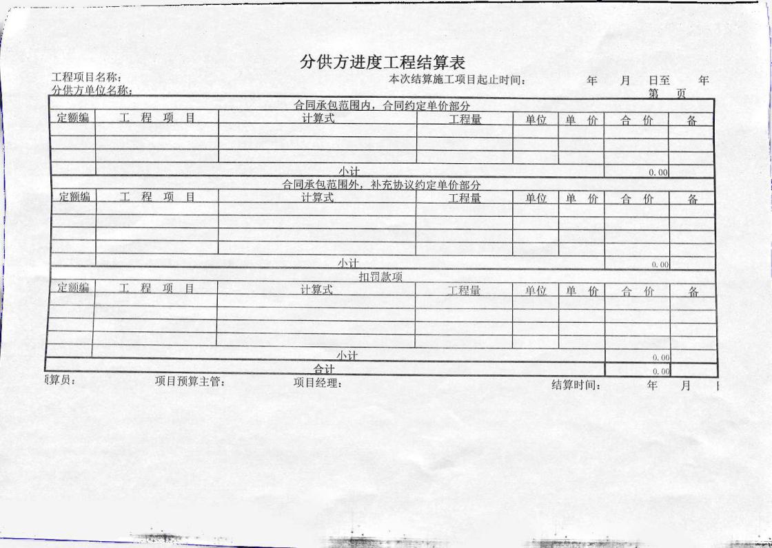 2、其次,項(xiàng)目商務(wù)部、材料部門(mén)每月20-25日根據(jù)本月現(xiàn)場(chǎng)完工進(jìn)度及材料收料清單,對(duì)已簽訂合同的各分供方辦理進(jìn)度結(jié)算,完成多少結(jié)算多少,項(xiàng)目經(jīng)理在結(jié)算書(shū)封面簽字確認(rèn)后,交財(cái)務(wù)及時(shí)入賬。