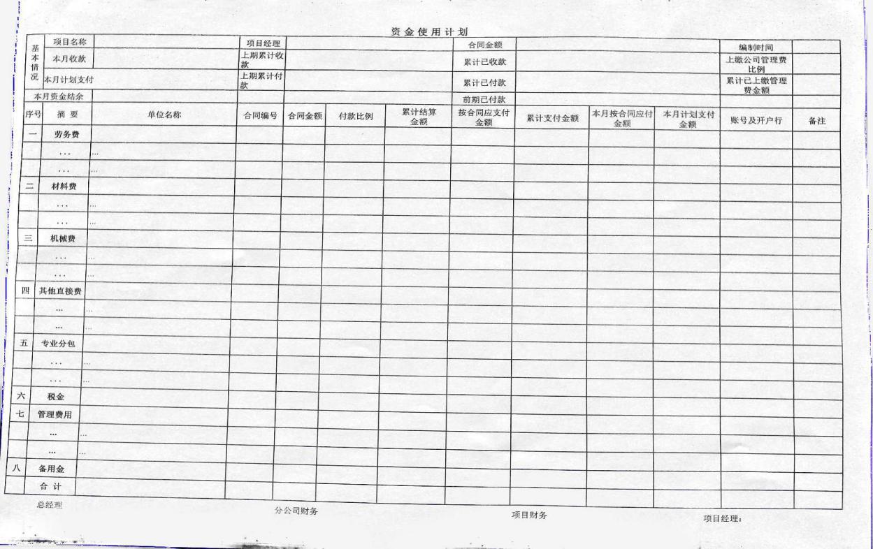 3、每月項(xiàng)目回款后,上報(bào)資金計(jì)劃,計(jì)劃的內(nèi)容應(yīng)覆蓋全,累計(jì)收款、累計(jì)資金結(jié)余、每家單位累計(jì)結(jié)算、累計(jì)付款、計(jì)劃支付等各項(xiàng)金額應(yīng)準(zhǔn)確無(wú)誤。資金計(jì)劃經(jīng)區(qū)域公司財(cái)務(wù)部審核及總經(jīng)理批復(fù)后,單獨(dú)存檔,付款時(shí)逐筆核對(duì)單位及金額。