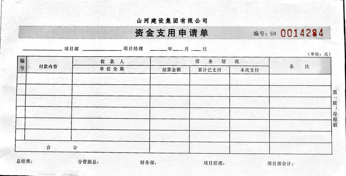 4、根據(jù)資金計(jì)劃,分單位填制資金支用單,項(xiàng)目部財(cái)務(wù)人員對(duì)該過(guò)程把好關(guān),即做好“六不支付”------不開(kāi)收據(jù)不付款、沒(méi)有結(jié)算或結(jié)算不夠不付款、發(fā)票不夠不付款(或預(yù)留相關(guān)稅金)、委托支付不付款、簽字手續(xù)不齊不付款、沒(méi)有尾款承諾的不付款。