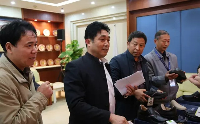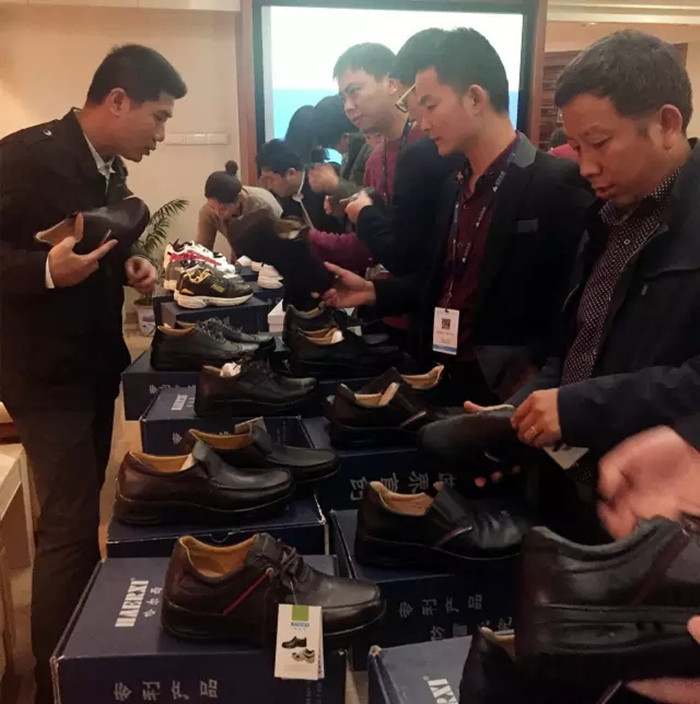 下午2:30,一雙雙從廠家拖來的樣品鞋,整齊有序地?cái)[放著。