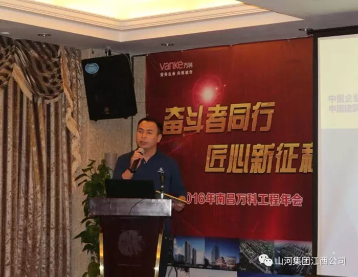 1月6日,南昌萬科2016年度工程系統(tǒng)年會在南昌凱美格蘭云天大酒店舉行。南昌萬科工程系統(tǒng)及合作單位近100人出席,山河集團江西區(qū)域公司副總經(jīng)理劉丹,項目經(jīng)理汪宏章、王蒙等應邀參加。會議由南昌萬科工程與技術管理中心經(jīng)理劉堯榮主持。