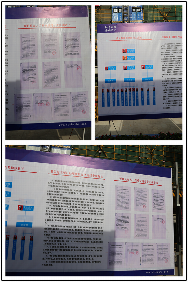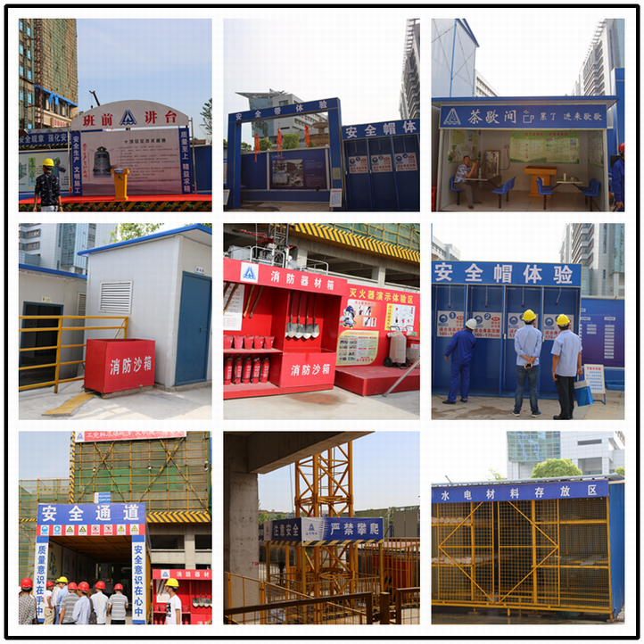 堅持安全文明施工標(biāo)準(zhǔn)化,辦公區(qū)、生活區(qū)、施工區(qū)布置三區(qū)分離,施工現(xiàn)場大門設(shè)置人行通道,保證人車分流;在進(jìn)場大門左側(cè)醒目位置設(shè)置“九牌三圖”,發(fā)揮班前講臺作用,每天清晨宣貫工作作業(yè)相關(guān)注意事項,項目組織機(jī)構(gòu)及五方責(zé)任承諾公示、門衛(wèi)打卡、視頻監(jiān)控、車輛沖洗、場區(qū)降塵、重大危險源公示欄等嚴(yán)格執(zhí)行標(biāo)準(zhǔn)。