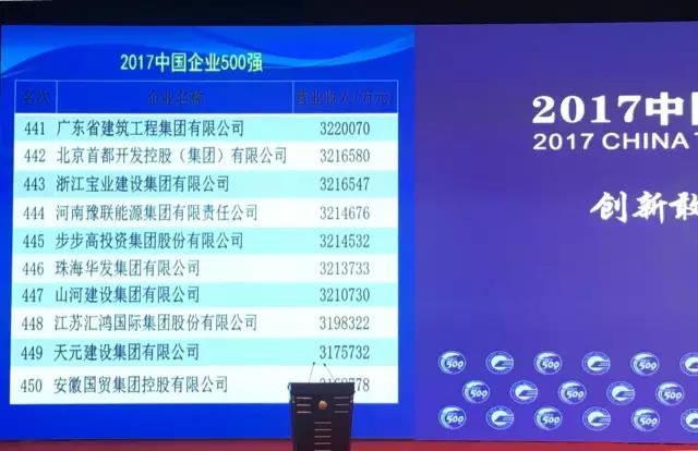 2017 中國企業(yè)500 強排行榜是由中國企業(yè)聯(lián)合會、中國企業(yè)家協(xié)會連續(xù)第16 次向社會公開發(fā)布,以企業(yè)的營業(yè)收入作為統(tǒng)計依據(jù)。2017中國企業(yè)500強的入圍門檻為283.11億元,較上年大幅提升39.65億元,提升幅度是自2002年首次發(fā)布中國企業(yè)500 強以來最大的一次。