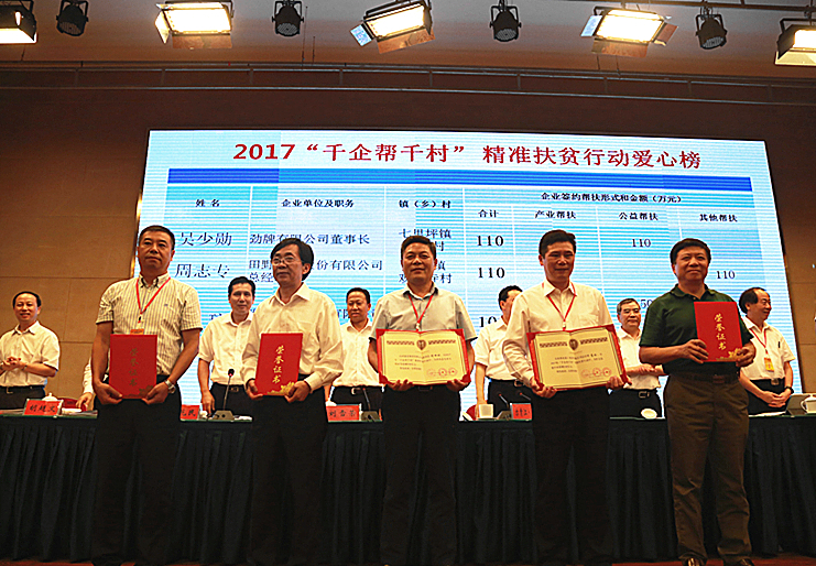 9月14日,湖北省“千企幫千村”精準(zhǔn)扶貧行動現(xiàn)場推進(jìn)會在黃岡市英山縣舉行。湖北省委常委、省委統(tǒng)戰(zhàn)部部長爾肯江•吐拉洪在會上講話。湖北省工商聯(lián)主席劉順妮通報了全省“千企幫千村”精準(zhǔn)扶貧行動推進(jìn)情況,現(xiàn)場舉行了村企結(jié)對簽約儀式。會議由湖北省委統(tǒng)戰(zhàn)部副部長、省工商聯(lián)黨組書記、常務(wù)副主席王兆民主持,黃岡市委書記劉雪榮致辭。