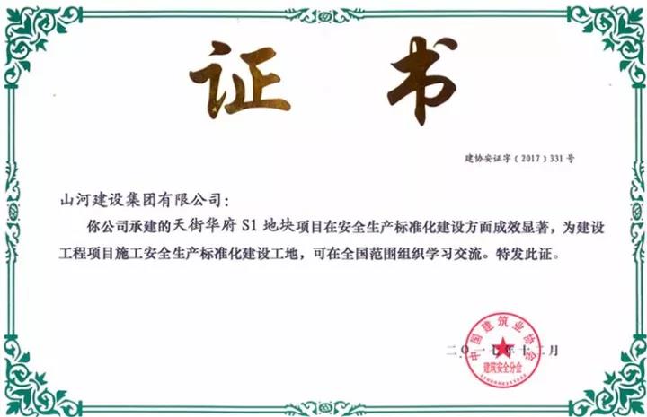 12月13日,中國建筑業(yè)協(xié)會建筑安全分會揭曉了2017年度“建設(shè)工程項目施工安全生產(chǎn)標(biāo)準(zhǔn)化建設(shè)工地”名單,山河集團(tuán)海南公司天街華府S1地塊項目入圍,摘得全國建筑安全文明施工最高獎。這是海南公司繼2011年寶安?濱海豪庭1#、2#住宅樓項目獲獎之后再獲此項榮譽。