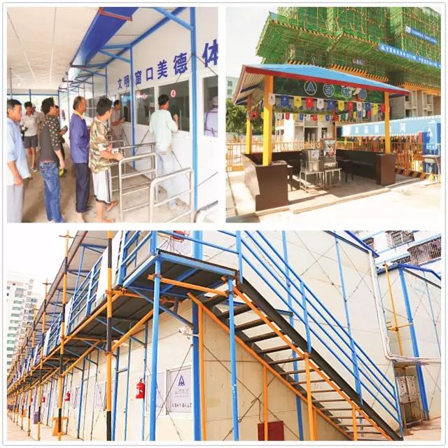 規(guī)范化的安全文明施工。項目部在安全教育方面采取多種形式,如:每日晨會進(jìn)行班前講評,實行告別違章承諾簽名,設(shè)置高空墜落、安全帶、安全帽、平衡木體驗區(qū)等。在安全防護(hù)方面,項目部嚴(yán)格按照安全文明施工方案搭建了安全防護(hù)設(shè)施。此外,項目部設(shè)立了會議室、茶水間、休息室、宿舍區(qū)等場地;構(gòu)建了樓層臨時消防、滅火器、消防水泵系統(tǒng);項目部出入口實行人車分道, 24小時值班制,并設(shè)置視頻監(jiān)控,提供了舒適、安全、完善的施工環(huán)境。