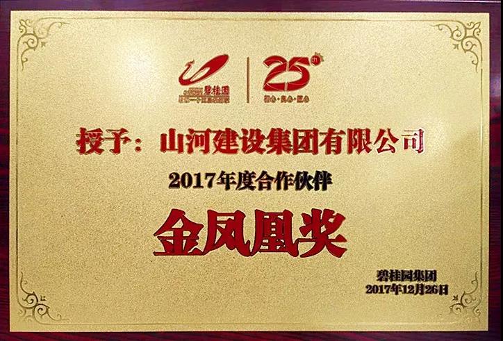 強強聯(lián)手 匯聚匠心 | 山河集團獲評碧桂園2017年度優(yōu)秀合作伙伴“金鳳凰獎”