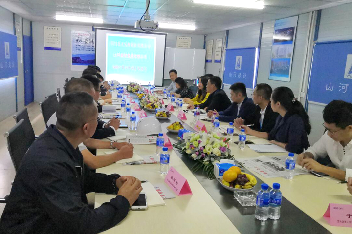 雙方秉承合作共贏的理念,從合作力度的深入、合作項目的拓展、工程建設(shè)的進度等方面進行了溝通交流。山河建設(shè)集團項目管理公司總工程師黃超恒就雙方合作的襄陽藍光半島公館項目的工程概況、施工進度、現(xiàn)場管理等情況進行了匯報。