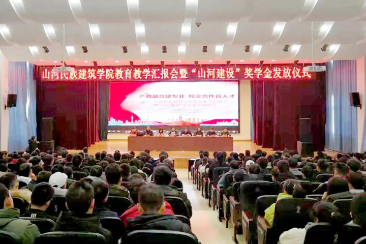 初冬時(shí)節(jié),寒意漸濃,12月11日上午,恩施職業(yè)技術(shù)學(xué)院學(xué)術(shù)報(bào)告廳里暖意融融。山河建設(shè)集團(tuán)總裁許金華,集團(tuán)人力資源總監(jiān)李穎、人力資源部總經(jīng)理匡亦成,工程技術(shù)管理部BIM中心主任李圣龍一行和學(xué)校200余名師生在這里聆聽了山河民族建筑學(xué)院教育教學(xué)匯報(bào)會(huì),共同見證了“山河建設(shè)”獎(jiǎng)學(xué)金發(fā)放儀式。會(huì)議由山河民族建筑學(xué)院副院長雷元?jiǎng)P主持。