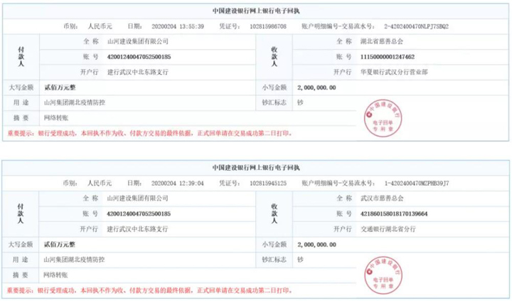 2月4日,山河集團(tuán)向武漢市慈善總會(huì)捐款200萬(wàn)用于前線疫情防控工作,并向湖北省慈善總會(huì)新增捐贈(zèng)200萬(wàn)定向支援黃岡市,助力一線醫(yī)護(hù)人員頑強(qiáng)應(yīng)戰(zhàn)。至此,山河集團(tuán)捐助善款共計(jì)500萬(wàn)元。