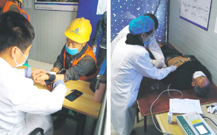 由重慶聚寧醫(yī)院的醫(yī)師和工作人員組成的七人體檢團(tuán)隊(duì)來到工地,為大家進(jìn)行了體溫、血常規(guī)、心電圖、生化檢查、內(nèi)外科常規(guī)檢查、視力等項(xiàng)目的檢查。體檢過程中,有專人負(fù)責(zé)維護(hù)排隊(duì)的安全距離,避免交叉感染風(fēng)險(xiǎn)。