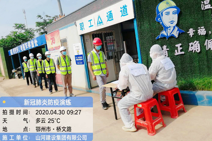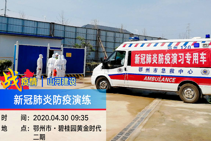 4月30日,山河建設(shè)集團項目管理公司承建的鄂州碧桂園黃金時代項目施工現(xiàn)場,集團攜手鄂鋼醫(yī)院開展的新冠肺炎防疫聯(lián)合演習(xí)在這里進行。
