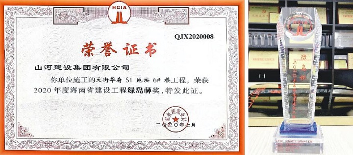 近日,山河建設集團海南公司承建的天街華府S1地塊6#樓工程榮獲2020年度海南省建設工程“綠島杯”獎,這是海南公司第七次攬獲海南省建設工程質量最高榮譽。