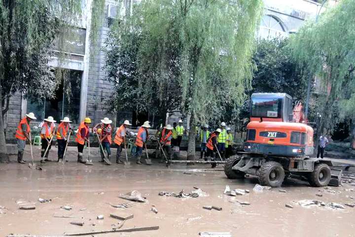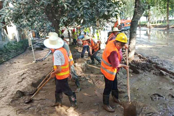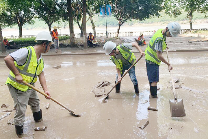 8月19日至20日,“長江2020年第5號洪水”“嘉陵江2020年第2號洪水”陸續(xù)通過重慶主城區(qū),巴南區(qū)魚洞江濱路、巴濱路、木洞、李家沱等低洼地區(qū)受災(zāi)嚴(yán)重。山河建設(shè)集團(tuán)西南公司碧桂園巴南工貿(mào)園項目部主動請纓,組織管理人員及工人成立了一支道路清淤志愿隊,積極投入到救災(zāi)工作中。