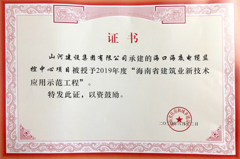 8月10日,海南省住房和城鄉(xiāng)建設(shè)廳公布2019年度“海南省建筑業(yè)新技術(shù)應(yīng)用示范工程”名單,山河建設(shè)集團(tuán)海南公司承建的??诤5纂娎|監(jiān)控中心項(xiàng)目名列其中。