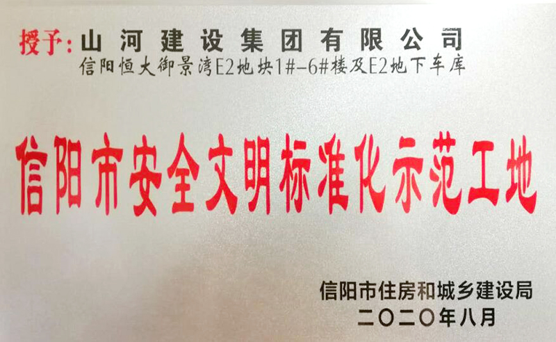 [河南公司]山河集團(tuán)河南公司恒大御景灣項(xiàng)目榮獲“信陽(yáng)市安全文明標(biāo)準(zhǔn)化示范工地”