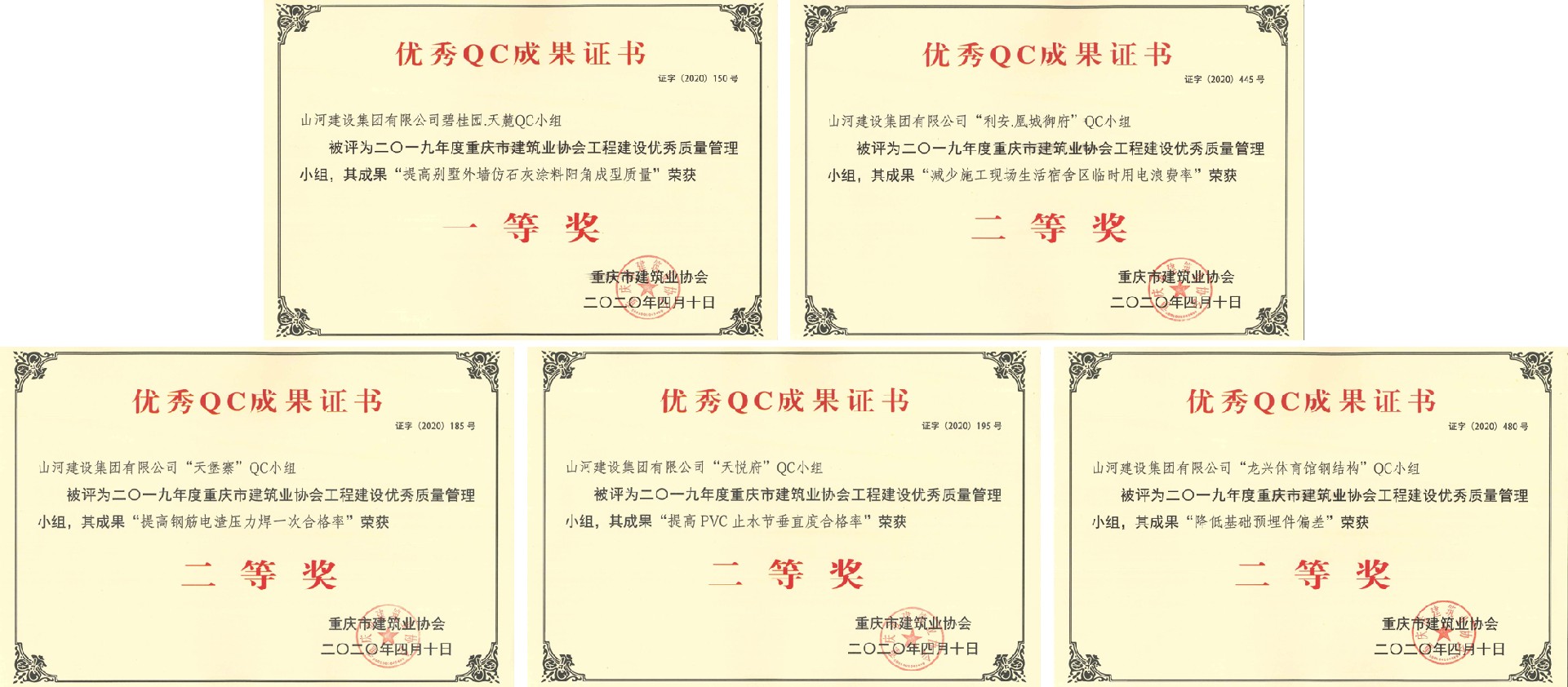 從重慶市建筑業(yè)協(xié)會(huì)獲悉,在2019年度工程建設(shè)優(yōu)秀質(zhì)量管理小組評(píng)審活動(dòng)中,山河建設(shè)集團(tuán)西南公司5項(xiàng)QC成果被評(píng)為優(yōu)秀QC成果,其中一等獎(jiǎng)1項(xiàng)、二等獎(jiǎng)4項(xiàng)。