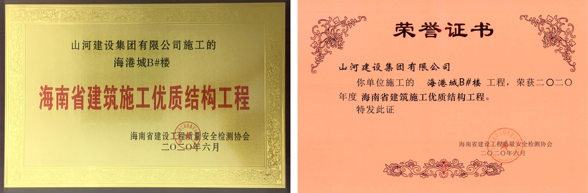 [海南公司]山河集團海南公司海港城項目B#樓榮獲“海南省建筑施工優(yōu)質結構工程”