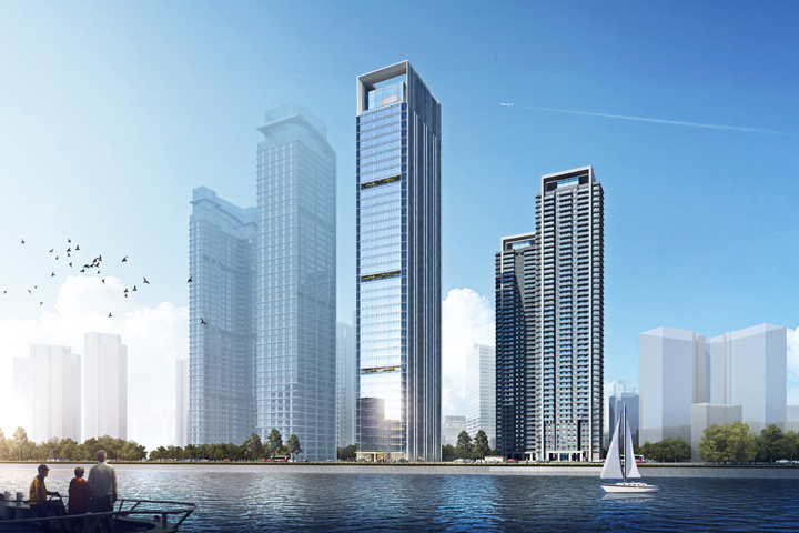 濱江御府項目位于武漢市漢陽區(qū)濱江大道與攔江路交匯處西南角,合同額約3.3億元,總建筑面積約為13.2萬平方米,由1#樓一棟辦公樓、2#和3#樓兩棟住宅樓、4#商業(yè)樓及地下室組成,結(jié)構(gòu)形式為鋼筋混凝土框架+核心筒和框剪結(jié)構(gòu)。
