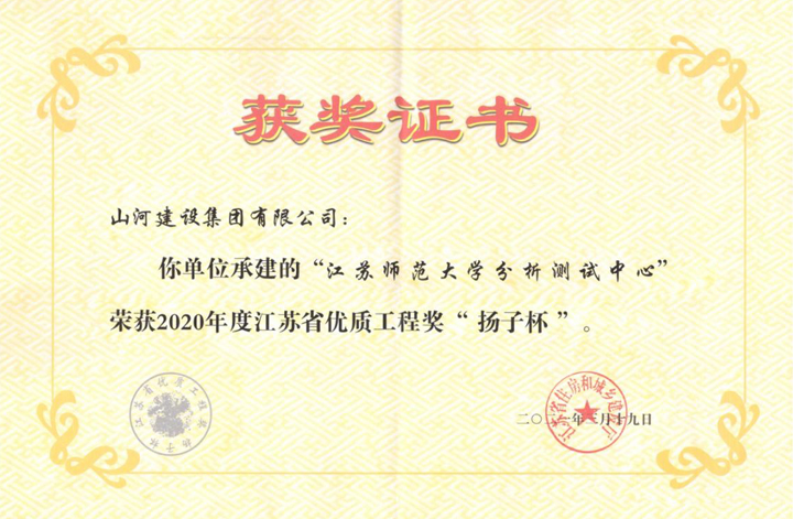 近日,2020年度江蘇省優(yōu)質(zhì)工程獎(jiǎng)“揚(yáng)子杯”獲獎(jiǎng)項(xiàng)目名單揭曉,山河建設(shè)集團(tuán)江蘇公司承建的江蘇師范大學(xué)分析測(cè)試中心工程榜上有名。這是江蘇省建筑工程質(zhì)量最高獎(jiǎng)項(xiàng),也是繼徐州市鼓樓區(qū)琵琶街道辦事處養(yǎng)老服務(wù)中心項(xiàng)目之后,江蘇公司再次獲此殊榮。