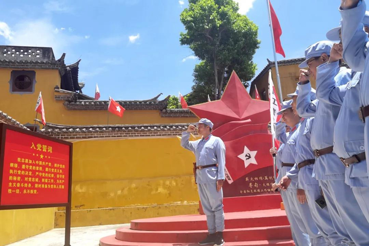 上午9時(shí),全體黨員、預(yù)備黨員、發(fā)展對象、入黨積極分子等近50人整裝出發(fā),乘車前往120公里外的丹桂紅軍村。這個(gè)看起來不起眼的小村莊,見證了中央紅軍巧渡金沙江的偉大壯舉,也見證了中國革命史上的一次重大轉(zhuǎn)折。抵達(dá)目的地后,大家身著戎裝,英姿颯爽地走進(jìn)丹桂紅軍村,開始了這場紅色之旅。