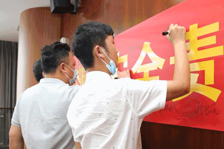 筑品質(zhì)山河,成百年基業(yè),是集團(tuán)上下的共同愿景,更是山河人行穩(wěn)致遠(yuǎn)的實(shí)際行動(dòng)?;顒?dòng)最后的安全承諾簽名儀式上,與會人員依次上前,在印有“落實(shí)安全責(zé)任 推動(dòng)安全發(fā)展”主題的紅色條幅上簽下自己的名字,把承諾寫下來,記心上,以行動(dòng)履行崗位職責(zé),堅(jiān)定信心做好安全生產(chǎn)工作。