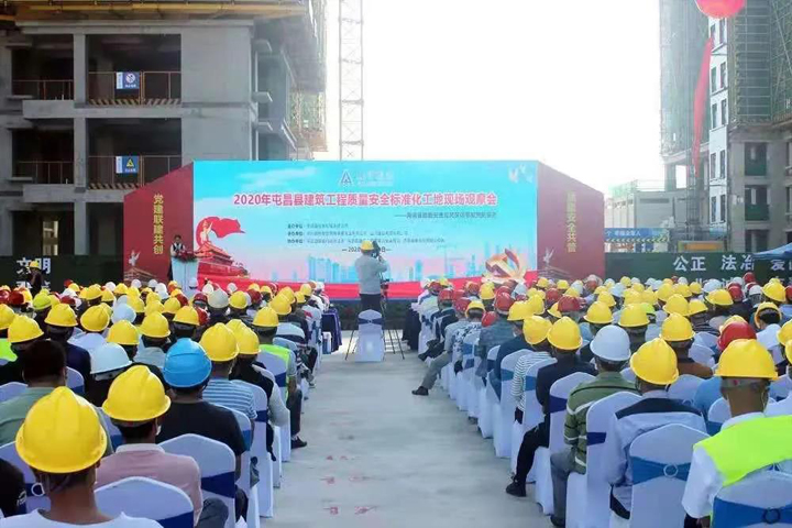 屯昌“林溪緣”項目部堅持圍繞生產(chǎn)抓黨建,抓好黨建促生產(chǎn),以打造優(yōu)質(zhì)隊伍、優(yōu)質(zhì)工程為目標,黨員干部帶頭沖在前、干在先,高標準、高質(zhì)量、高效率抓好各項工作落實,如期完成節(jié)點施工任務(wù),受到主管部門和業(yè)主的一致好評。2020年11月13日,該項目承辦了屯昌縣建筑工程質(zhì)量安全標準化工地現(xiàn)場觀摩會,展示了“山河造”的品質(zhì)實力。