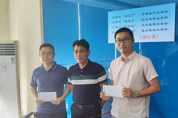 總經(jīng)理丁賢林向受到表彰的美的·萬麓府、藍(lán)光未來城項(xiàng)目代表頒發(fā)了獎(jiǎng)金,勉勵(lì)優(yōu)秀管理團(tuán)隊(duì)再接再厲,爭(zhēng)取更大成績(jī)。丁賢林在總結(jié)講話中說,上半年,工程管理團(tuán)隊(duì)、項(xiàng)目管理團(tuán)隊(duì)付出了巨大的努力,工程管理水平得到了進(jìn)一步提高。全體人員要繼續(xù)拉滿弓繃緊弦,全面加強(qiáng)質(zhì)量管理和安全管理,嚴(yán)格控制每道工序的施工,嚴(yán)守安全生產(chǎn)十條“紅線”,實(shí)現(xiàn)工程管理全過程管控。
