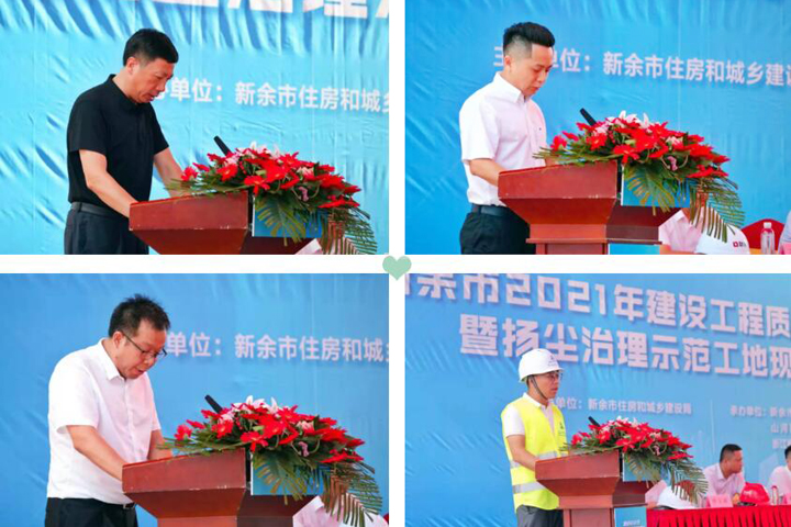 活動(dòng)伊始,新余市建管局局長何祝生、新余市永越置業(yè)有限公司總經(jīng)理郜文、山河建設(shè)集團(tuán)江西公司總經(jīng)理熊善杰分別發(fā)言,聯(lián)發(fā)永康狀元府項(xiàng)目經(jīng)理袁傳根就項(xiàng)目質(zhì)量安全、揚(yáng)塵治理等方面進(jìn)行了經(jīng)驗(yàn)分享。