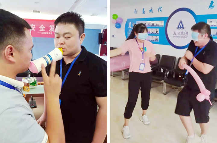開場(chǎng)游戲“一笑就繃不住”引得全場(chǎng)笑聲不斷,“吹氣球傳紙筒接力賽”非常鍛煉大家的協(xié)作能力,只要一笑紙筒就會(huì)墜落,每個(gè)人想笑又不敢笑,令人忍俊不禁。“蒙眼互打游戲”要求參與者在蒙上眼睛的情況下,迅速找到對(duì)方并一擊即中,對(duì)反應(yīng)能力的要求很高,但“擊中目標(biāo)”也會(huì)讓人充滿成就感。