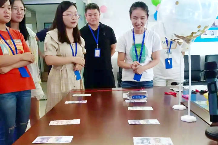 在前兩輪游戲中獲勝的隊(duì)伍或個(gè)人,得到額外的三次“滾錢”機(jī)會(huì),拿上一瓶礦泉水在擺有紙幣的桌子上滾動(dòng),停下來(lái)的時(shí)候指向哪張,便可“收歸己有”。大家興致高漲,摩拳擦掌,贏得現(xiàn)金獎(jiǎng)勵(lì)的“贏家”臉上洋溢著滿足的笑容。