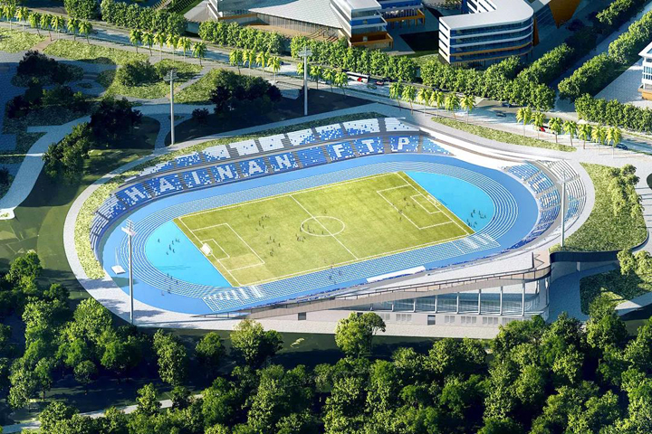 海南公司承建的試驗(yàn)區(qū)體育場項(xiàng)目是園區(qū)的重要組成部分,總用地面積約5.48萬平方米,建筑面積5307平方米,采用裝配式施工。體育場建筑層數(shù)為地上二層,總高度24米,并新建室外運(yùn)動(dòng)場1座(含400米標(biāo)準(zhǔn)競賽場地22000平方米)。