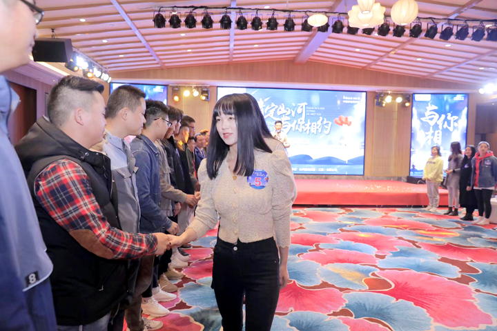 下午14時(shí),男女嘉賓懷著激動(dòng)又忐忑的心情,陸續(xù)到達(dá)會(huì)場(chǎng)。背景墻上,俊男靚女的照片及個(gè)人簡(jiǎn)介一一展示,TA們自信的笑容充滿著感染力。在輕快的音樂聲中,一顆愛意滿滿的紅心緩緩升起,活動(dòng)正式拉開帷幕。帶著對(duì)愛情的美好向往,男嘉賓列隊(duì)迎接女嘉賓閃亮登場(chǎng)。TA們對(duì)視微笑,依次握手3秒,在短短的一瞬間,也許已經(jīng)觸發(fā)了愛的信號(hào)。