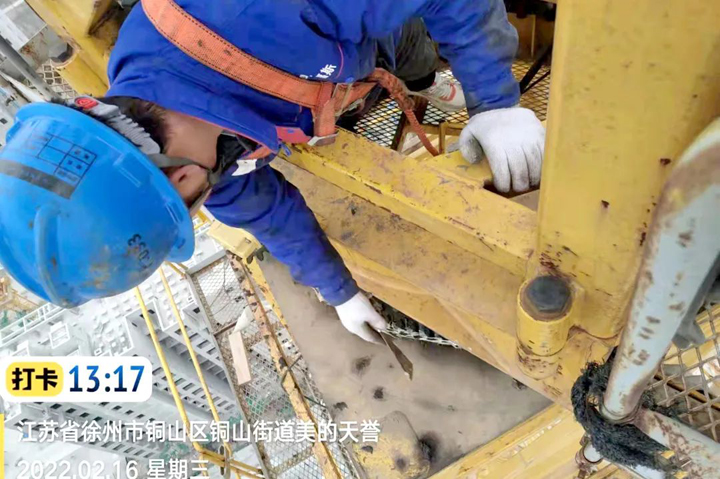 昆明龍四地塊棚改項目施工人員在檢查塔吊