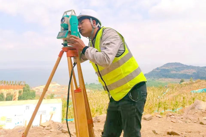 ▲新余聯(lián)發(fā)永康狀元府項目實測員在檢查墻面平整度