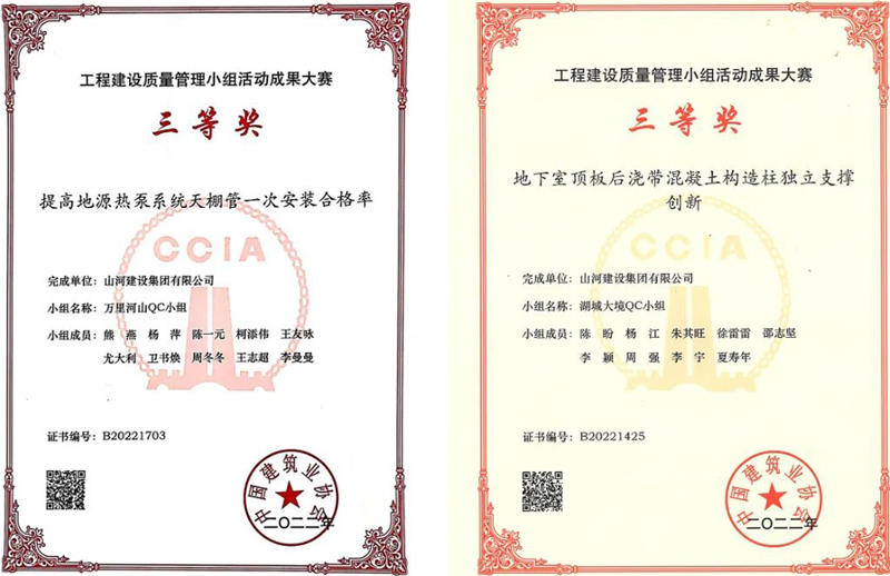 近日,中國建筑業(yè)協(xié)會公布了2022年度工程建設質量管理小組活動成果大賽獲獎名單,山河建設集團申報的兩項成果榮獲三等獎。