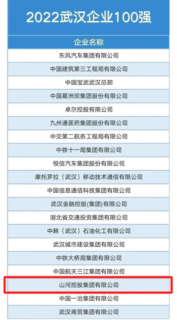 山河集團(tuán)上榜2022武漢企業(yè)百強(qiáng)