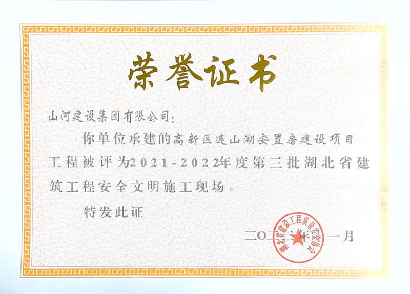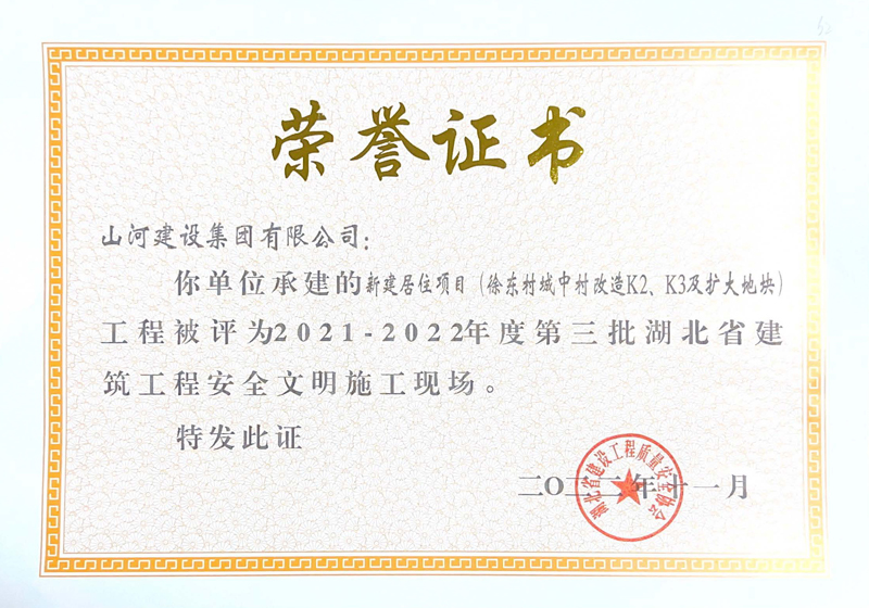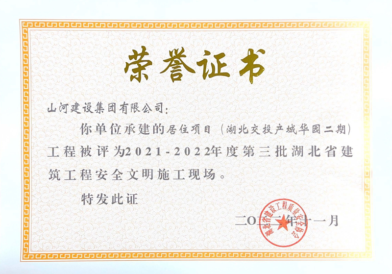 山河集團三項工程獲評湖北省建筑工程安全文明施工現(xiàn)場